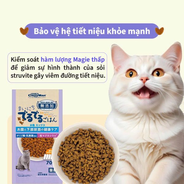 Kiểm soát hàm lượng Magie thấp, giúp giảm nguy cơ hình thành sỏi struvite – nguyên nhân chính gây viêm đường tiết niệu ở mèo.