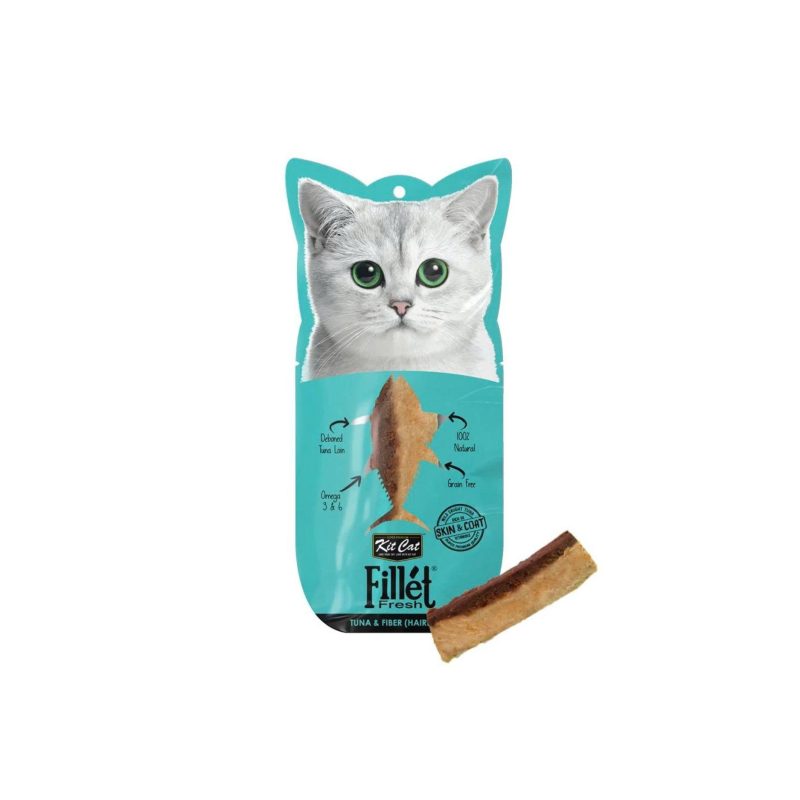 Snack cho mèo Kit Cat Fillet dạng gói 30g được chế biến từ 100% thịt gà fillet, cá ngừ hoặc cá hồi tươi, kết hợp cùng chiết xuất cá ngừ, Fructo Oligosaccharide và Carboxymethyl Cellulose giúp hỗ trợ tiêu hóa khỏe mạnh. Sản phẩm được các chuyên gia dinh dưỡng thú y hàng đầu nghiên cứu và phát triển, mang đến nguồn dinh dưỡng cân bằng, phù hợp cho mèo ở mọi lứa tuổi.