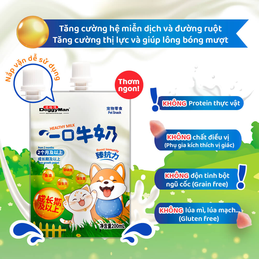 SỮA DINH DƯỠNG DOGGYMAN 200ML dành cho chó mèo trưởng thành (trên 2 tháng tuổi). Bổ sung dinh dưỡng hằng ngày, chăm sóc sức khỏe thú cưng. Thiết kế nắp vặn dễ sử dụng và bảo quản.
