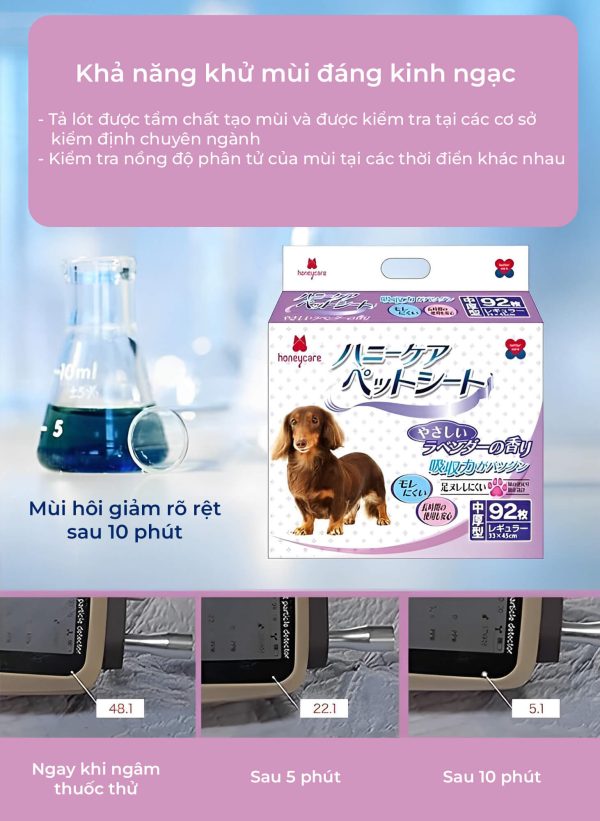 Tấm lót vệ sinh cho thú cưng Honey Care Deluxe hương Lavender là lựa chọn hoàn hảo giúp giữ vệ sinh cho chó mèo mỗi ngày. Phiên bản cao cấp được nâng cấp với khả năng thấm hút nhanh, khử mùi tốt và độ bền cao, phù hợp cho mọi giống thú cưng.